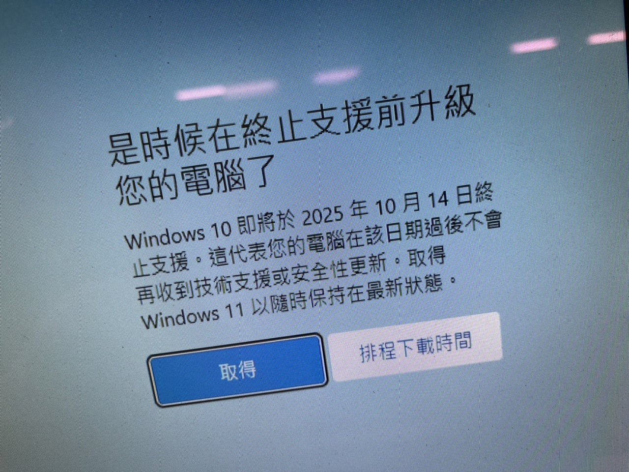 是時候在終止支援前升級您的電腦了 Windows 10 即將於 2025 年 10 月 14 日終止支援。這代表您的電腦在該日期過後不會再收到技術支援或安全性更新。取得 Windows 11 以隨時保持在最新狀態。 |