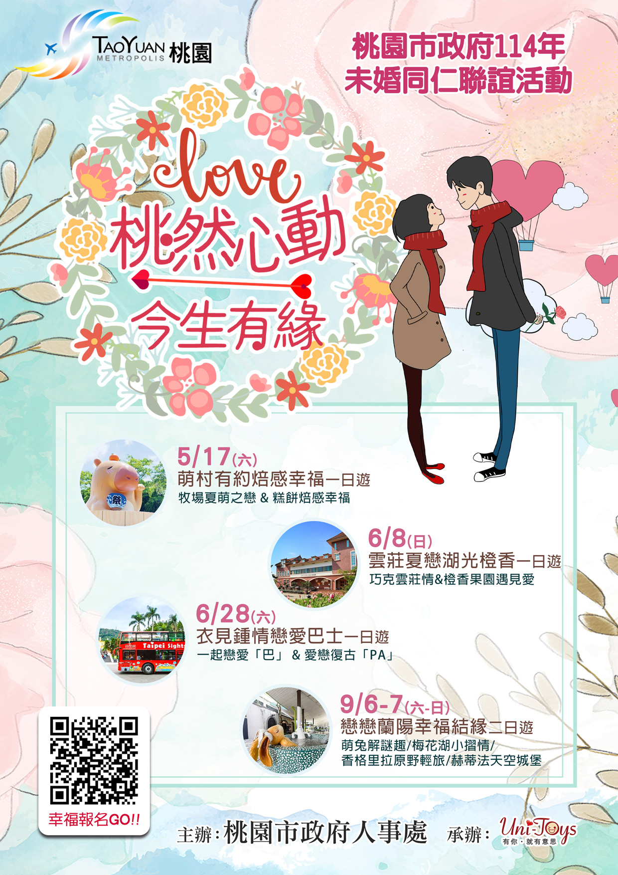 主旨: 函轉桃園市政府 114 年「桃然心動 今生有緣」第四梯次未婚聯誼活動,請查照。