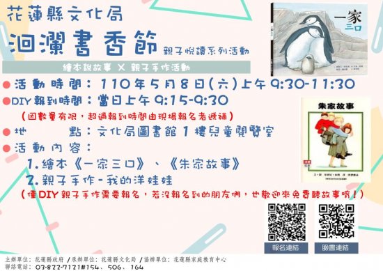 ●活動地點: 花蓮縣文化局圖書館 1 樓兒童閱覽室